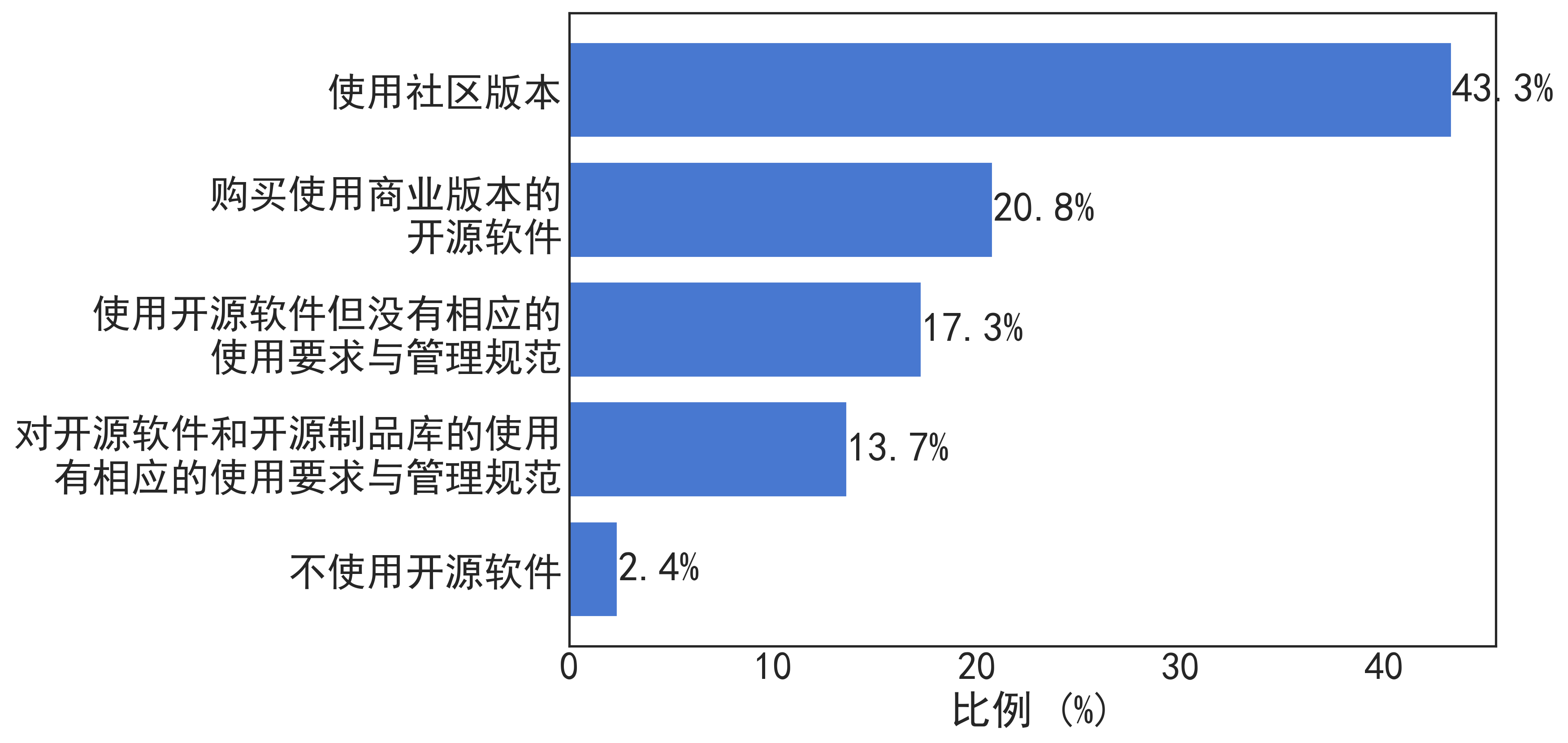 - 企业开源使用情况:多数企业使用社区版开源软件,并制定相应的使用要求和管理规范。