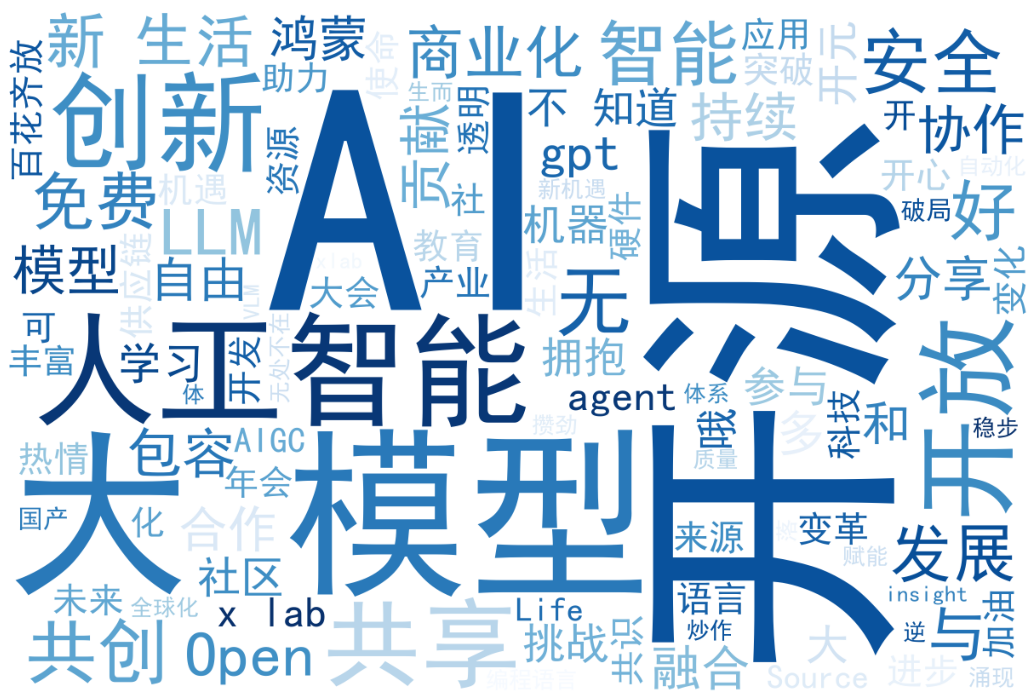- 技术创新:关键词如“创新”、“智能”、“大模型”表明,受访者高度关注技术领域的最新进展,尤其是人工智能和大型模型技术的发展。