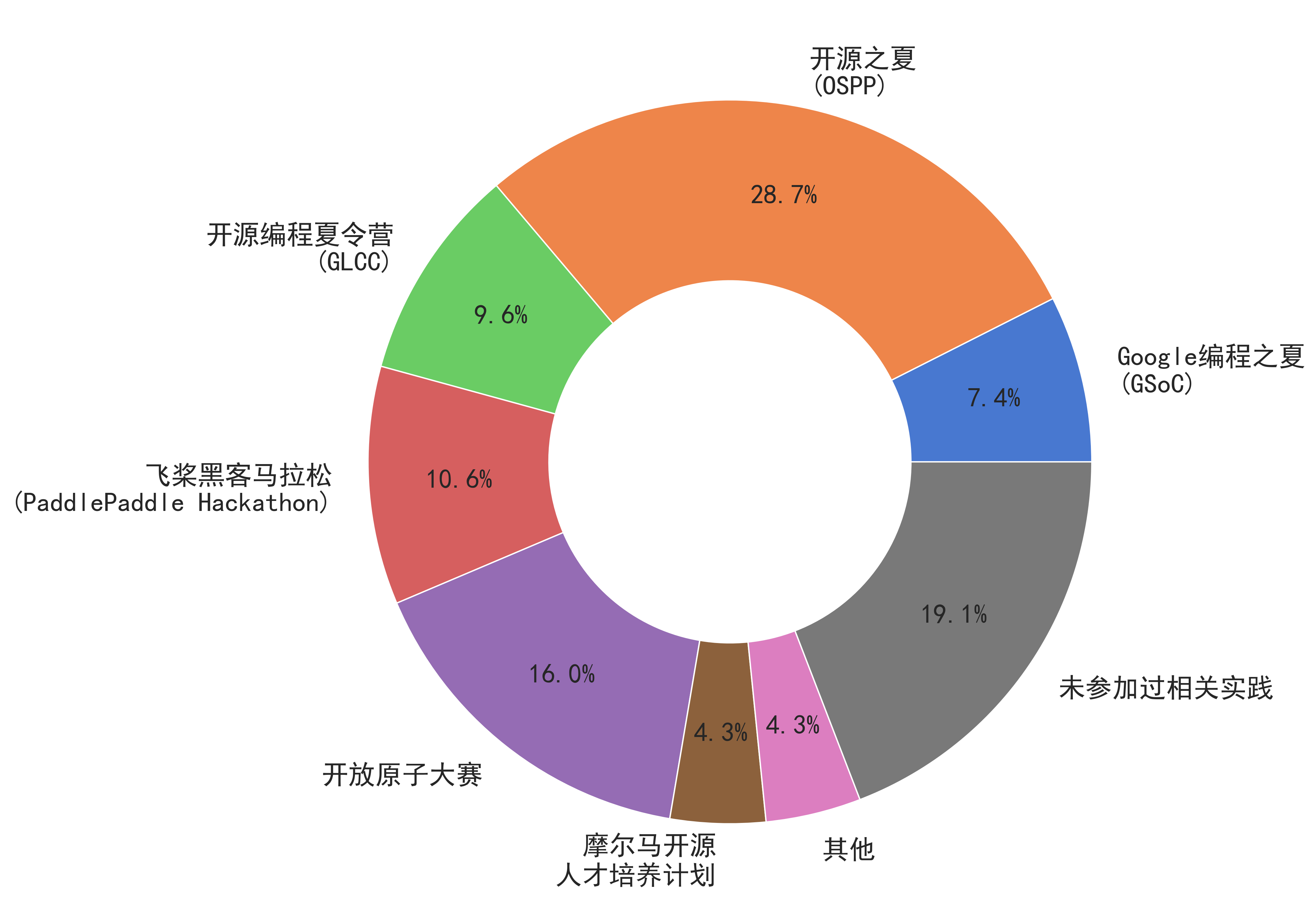 - 开源实践活动:受访者积极参与各类开源实践活动,如Google编程之夏(GSoC)和开源之夏(OSPP)等。