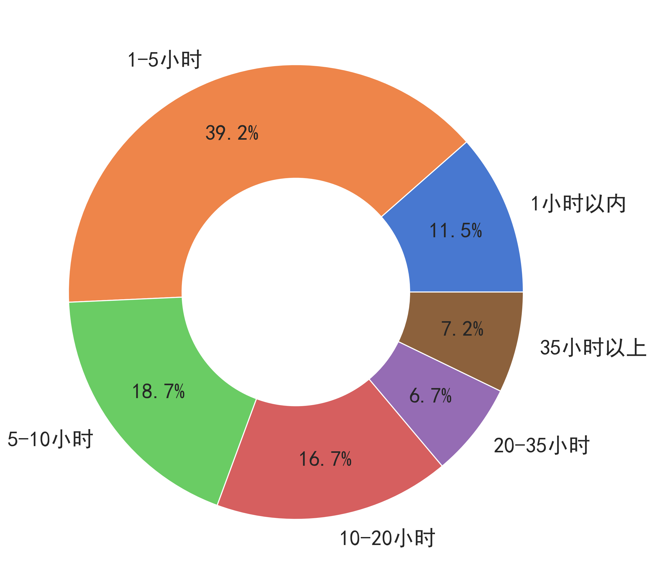 有超过半数的贡献者每周在开源项目上投入的时间超过 5 小时。有超过 20%的贡献者每周在开源项目上的投入时间达到了 10 小时以上。
