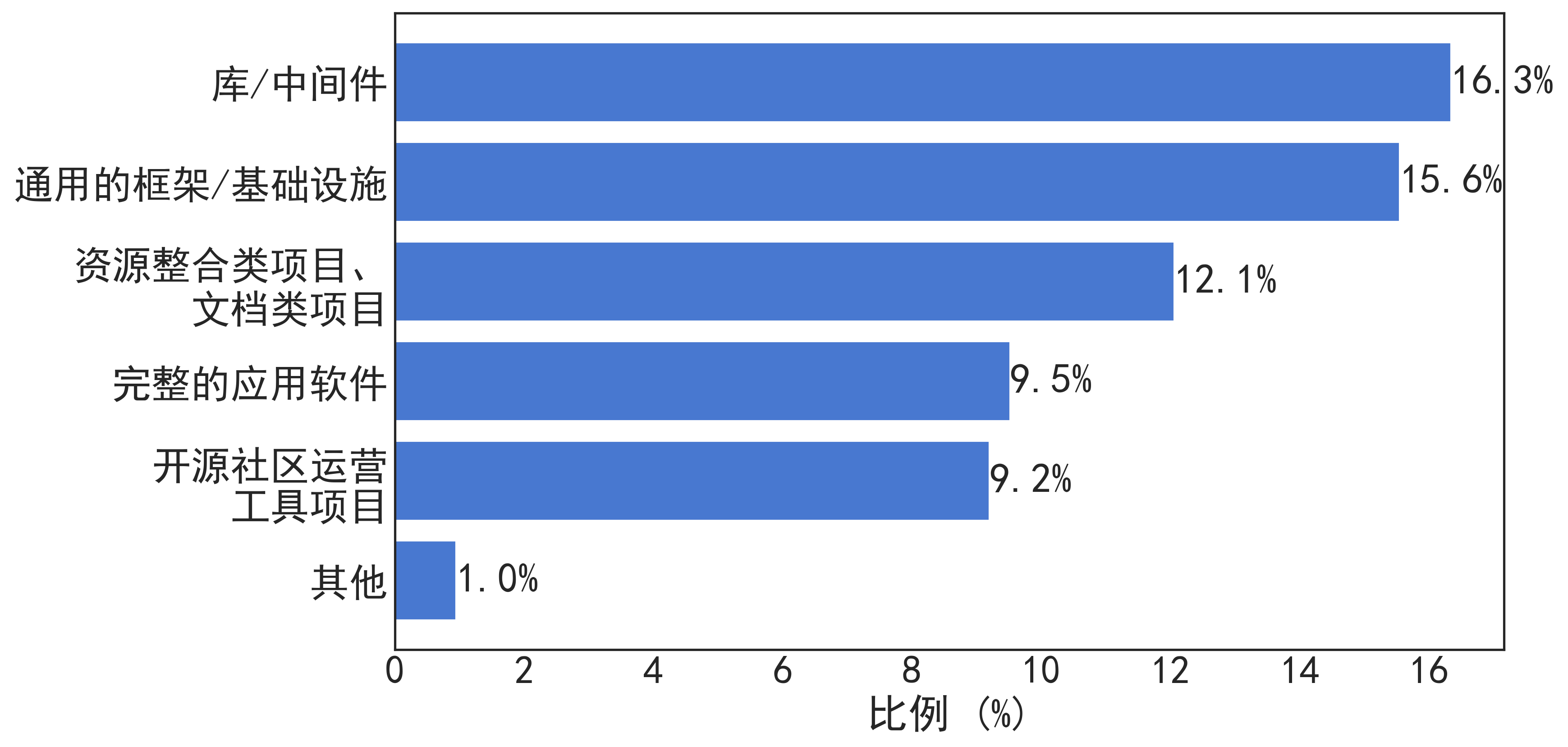 此部分的问题针对在开源社区角色为“贡献者”及以上层级的受访者提出。通过分析受访者在开源项目中的贡献类型和质量,我们可以评估他们对社区的具体贡献,并识别出提升贡献效率和质量的潜在途径。