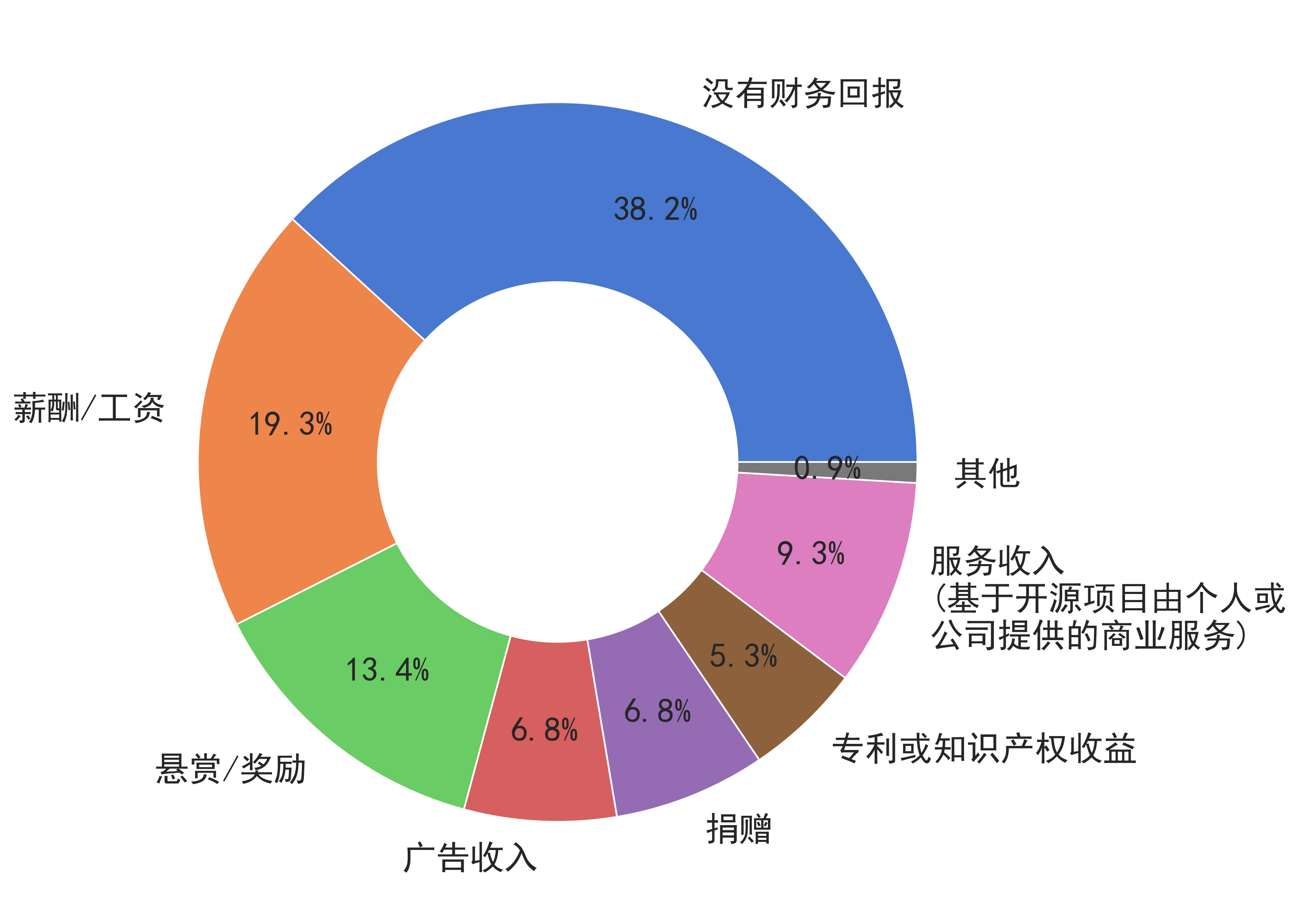 开源社区的激励机制是多维度的,不仅包括财务回报,还包括职业发展、社区认可和个人成长等方面。各激励方式都受到了积极评价,表明多元化的激励机制对开发者的开源参与产生了积极的影响。同时,开源项目的财务回报虽然多样,但大多数开发者更看重非财务的激励因素。